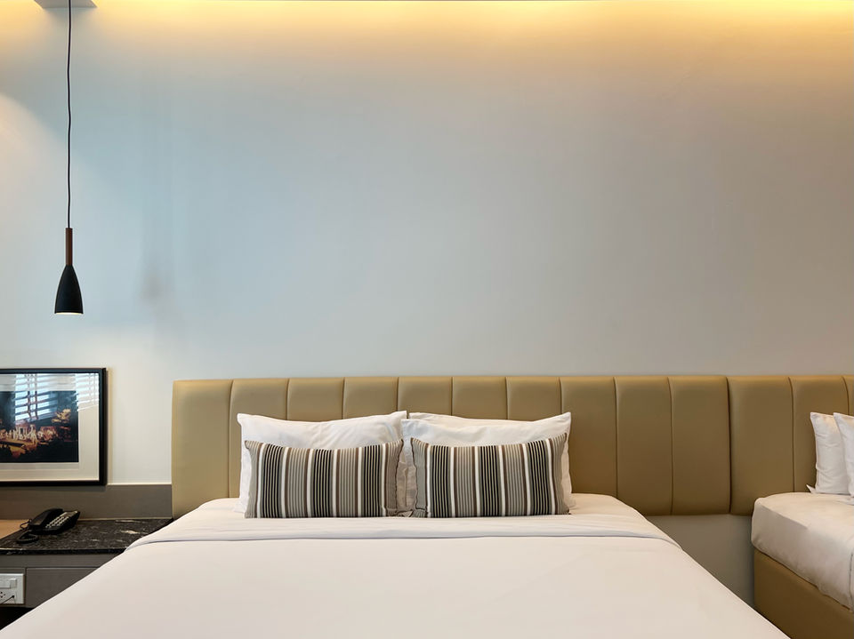 Welcome to our "Nitarn Family" Room. The Corner room with more space, an expansive haven designed with families in mind, inspired by the essence of bedtime stories. Named after the Thai term for "bedtime story," this room category offers a blend of modern minimalism and luxurious amenities, providing ample space for family comfort.